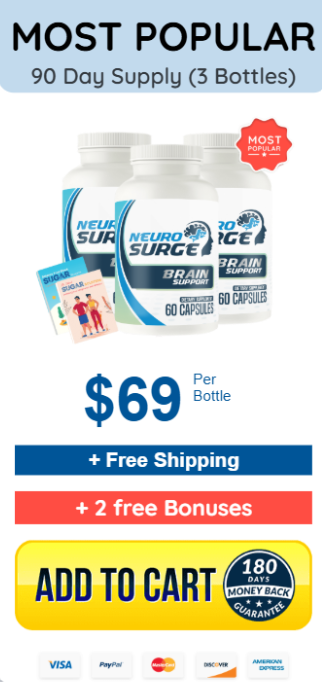 At this moment you can order Neuro Surge supplement for 82% OFF + FREE Shipping. This is a Limited-Time Offer and it won’t be available for long.